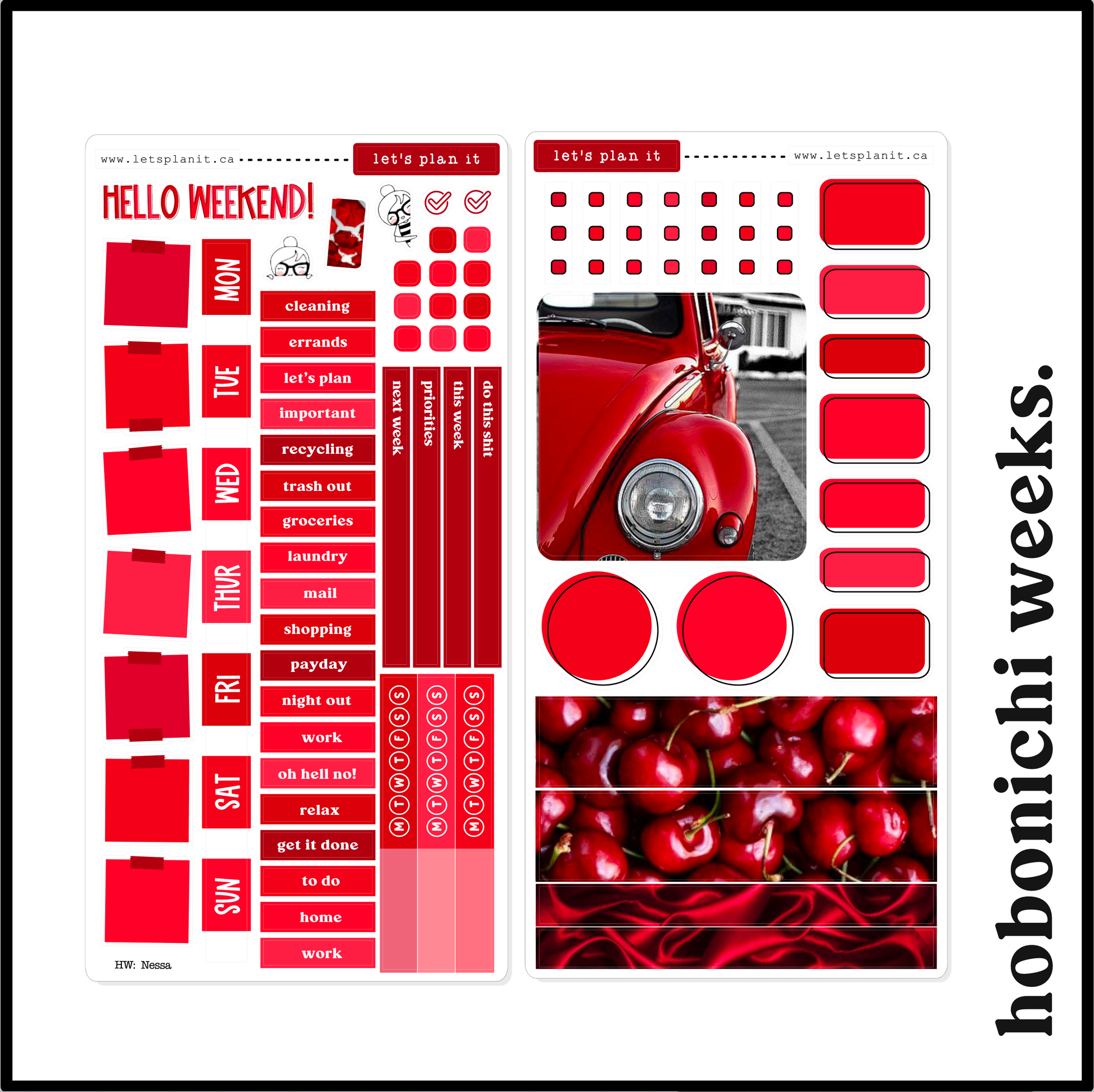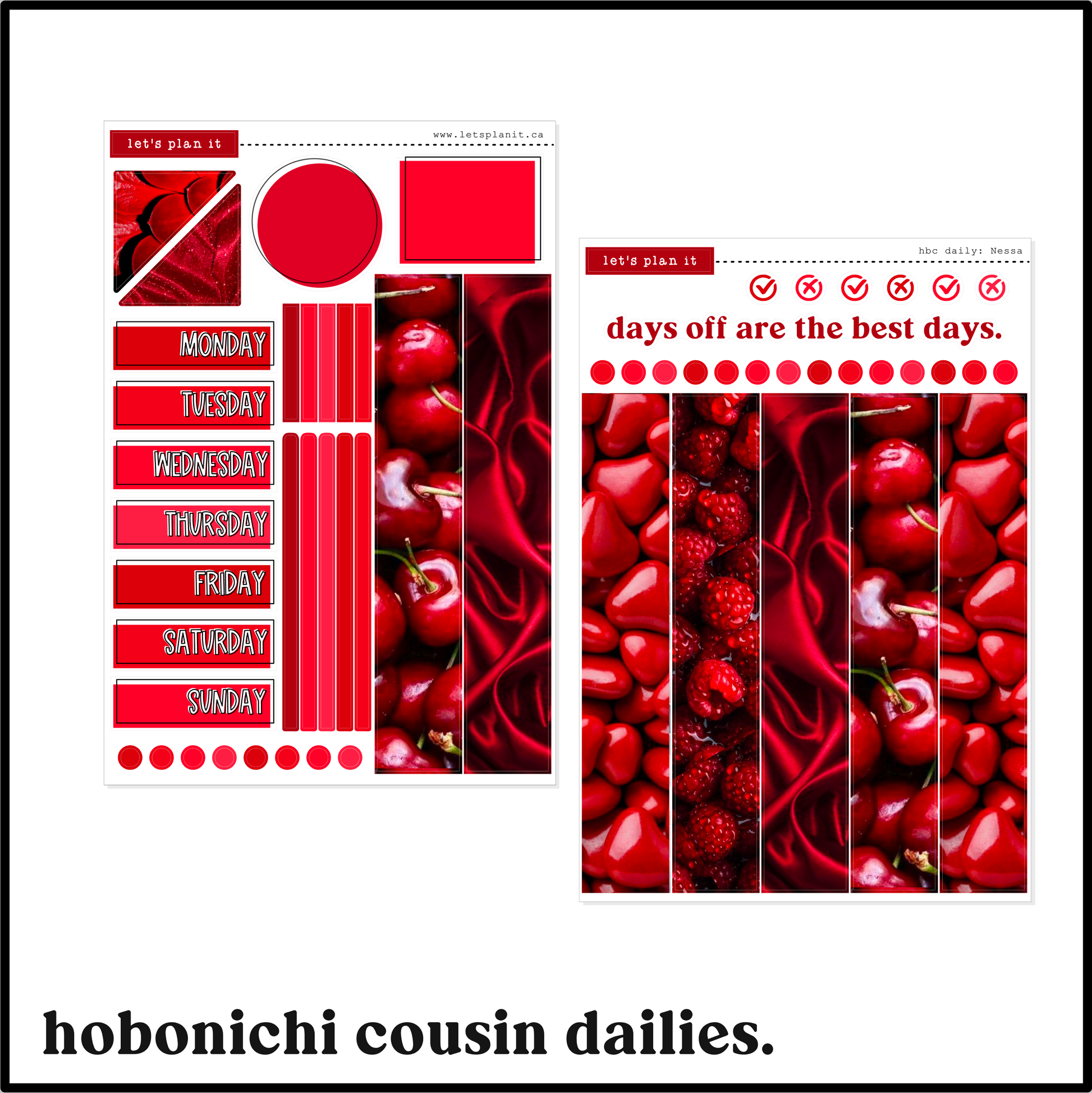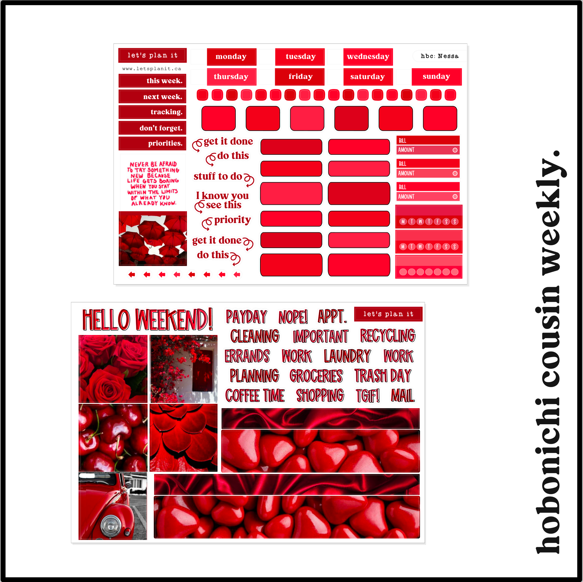This listing is for all weekly kit options - Hobonichi Cousin Weekly and Daily, Hobonichi Weeks, Standard Vertical. You can use the dropdown menu to choose kit/sheet options. Pantone-inspired, supplemental and/or deco sheets are available on transparent matte as add-ons.