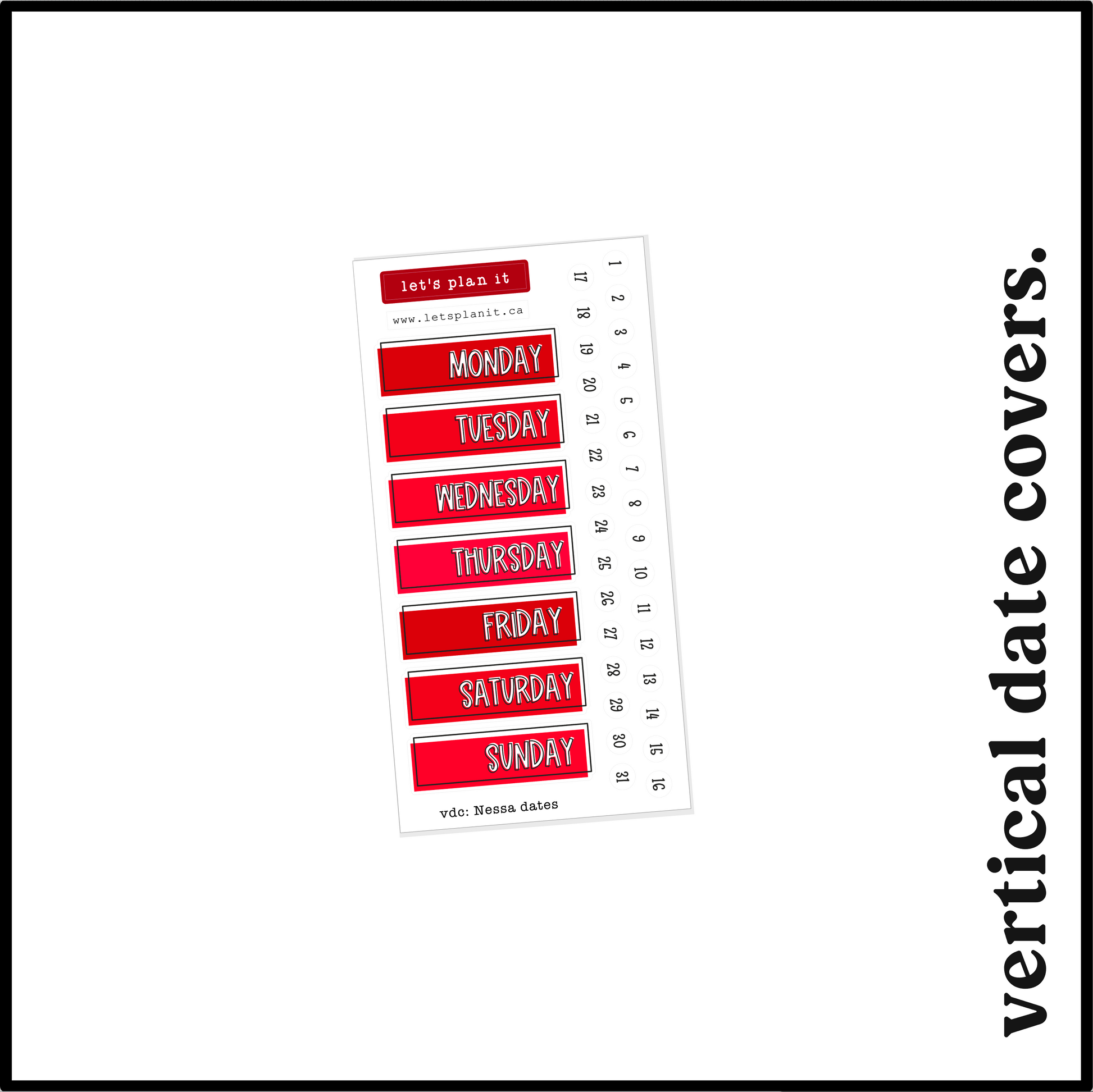 Vertical Date Covers: sheet size: 2.4" x 3.7"